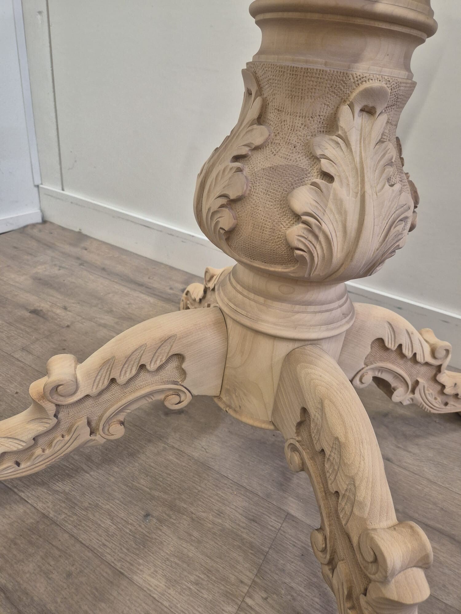 Een prachtige antieke tafelpoot, geschikt voor een ronde eettafel. Hij is gezandstraals en nu mooi blank eiken. Helemaal klaar om in een mooie kleur gebeitst of gespoten te worden!